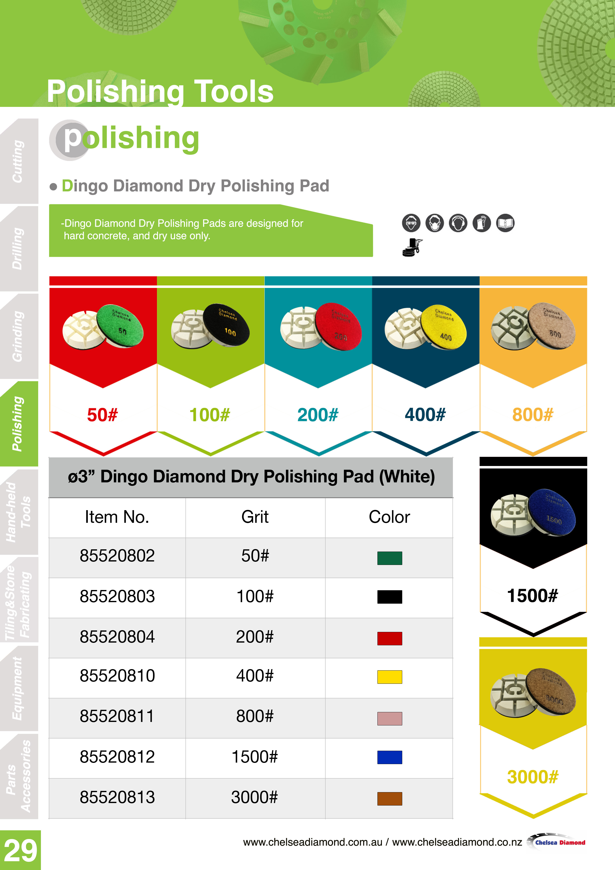ø3” Dingo diamond dry polishing pad (White) for hard concrete, 800#
